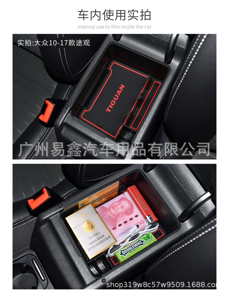 Plastic Center Console Armrest Storage Box Organizer Tray Insert for Tiguan