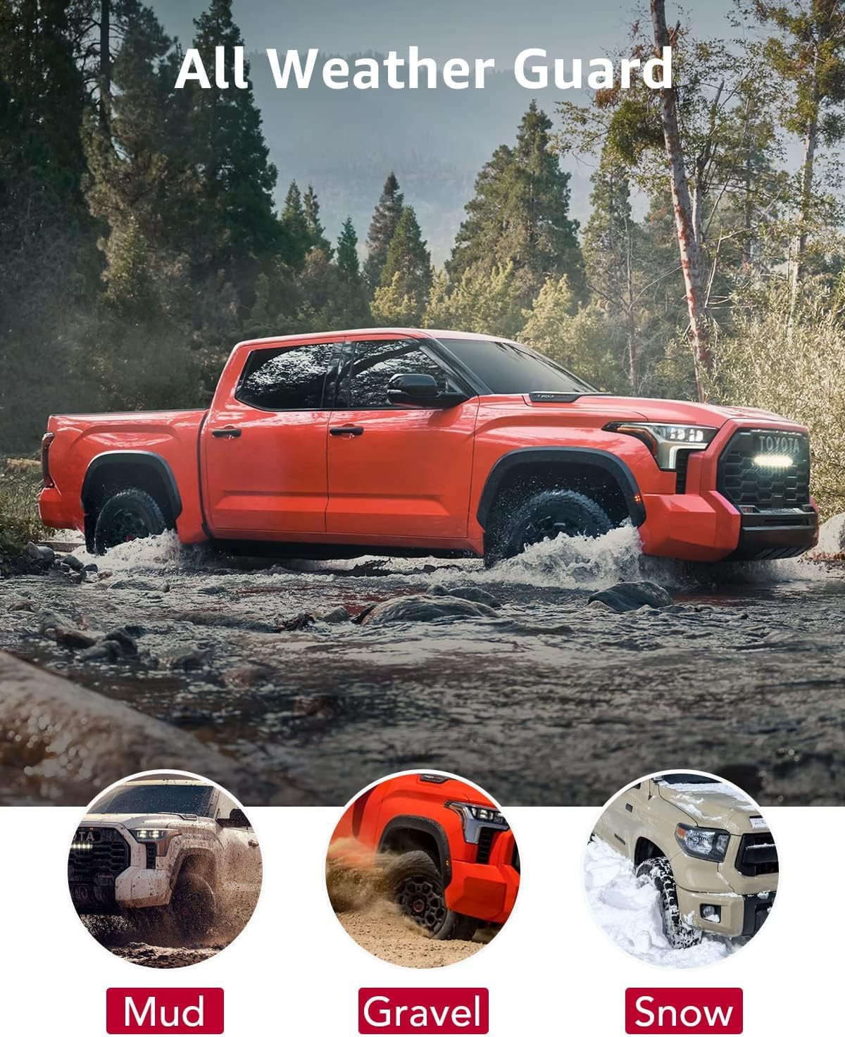 - Complete Protection: Includes a full set of mud flaps to effectively block mud, rocks, and debris from splashing onto your vehicle’s paint, reducing cleaning and potential damage.