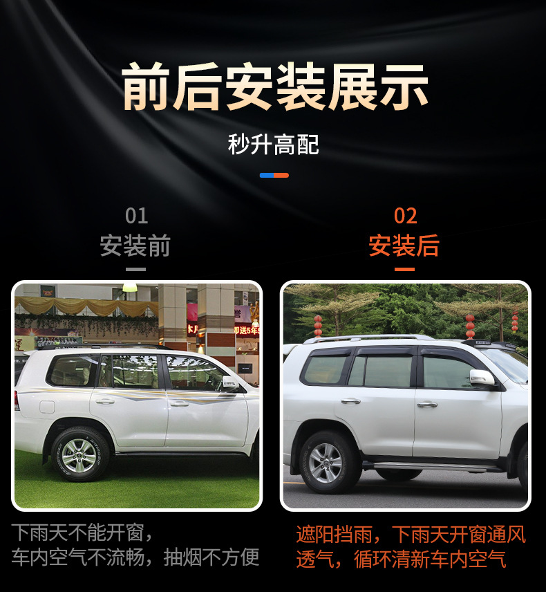 Platinum Electroplated Rain Visor Window Deflector for Toyota Land Cruiser Prado LC300 LC200 LC250 LC100 LC80 LC70 FJ150 FJ120 FJ90