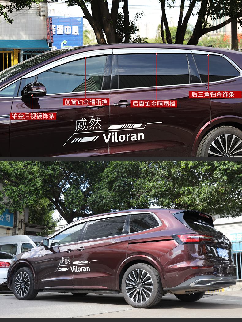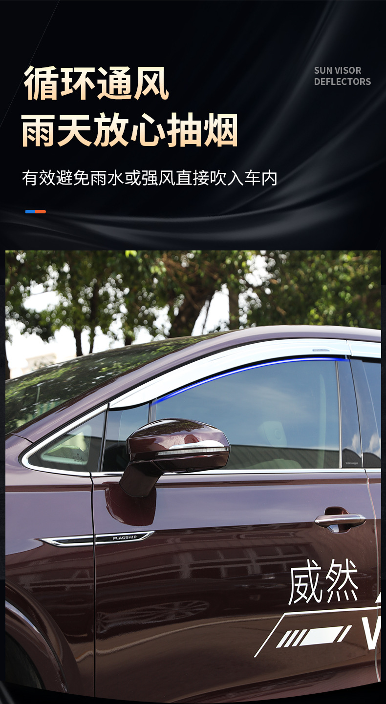 Platinum Plated Door Window Visor Deflector Rain Guards for Volkswagen Viloran 2020-Present (6-Piece Set)