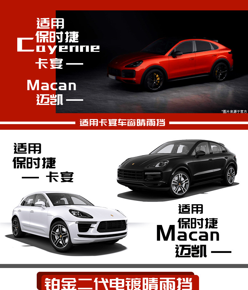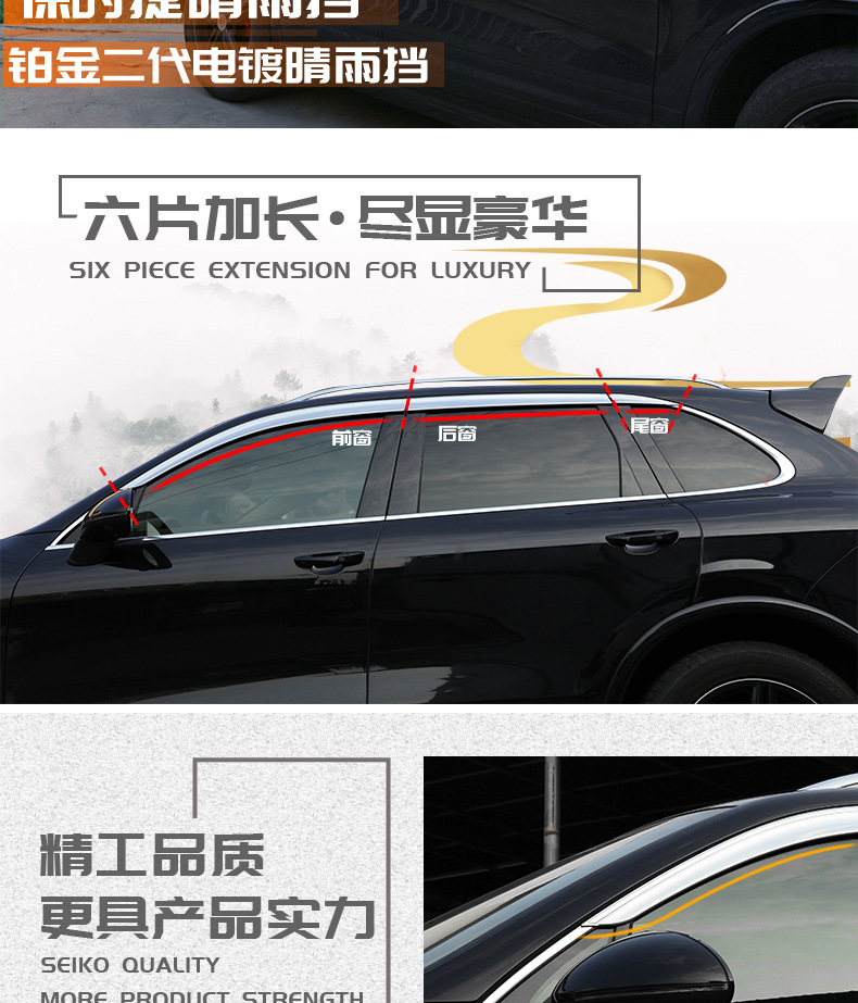 Platinum Window Rain Guards Visor for Porsche Cayenne Macan 2011-2018 6PCS