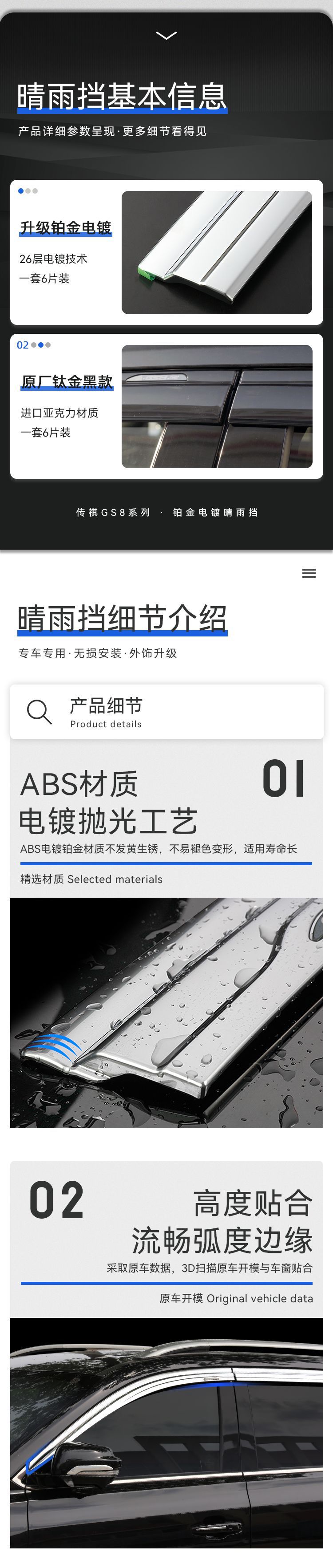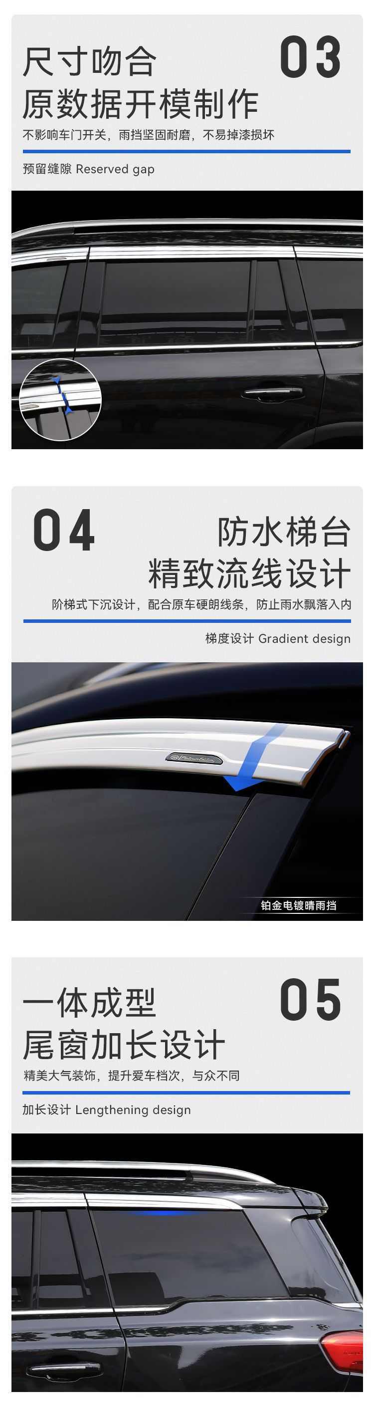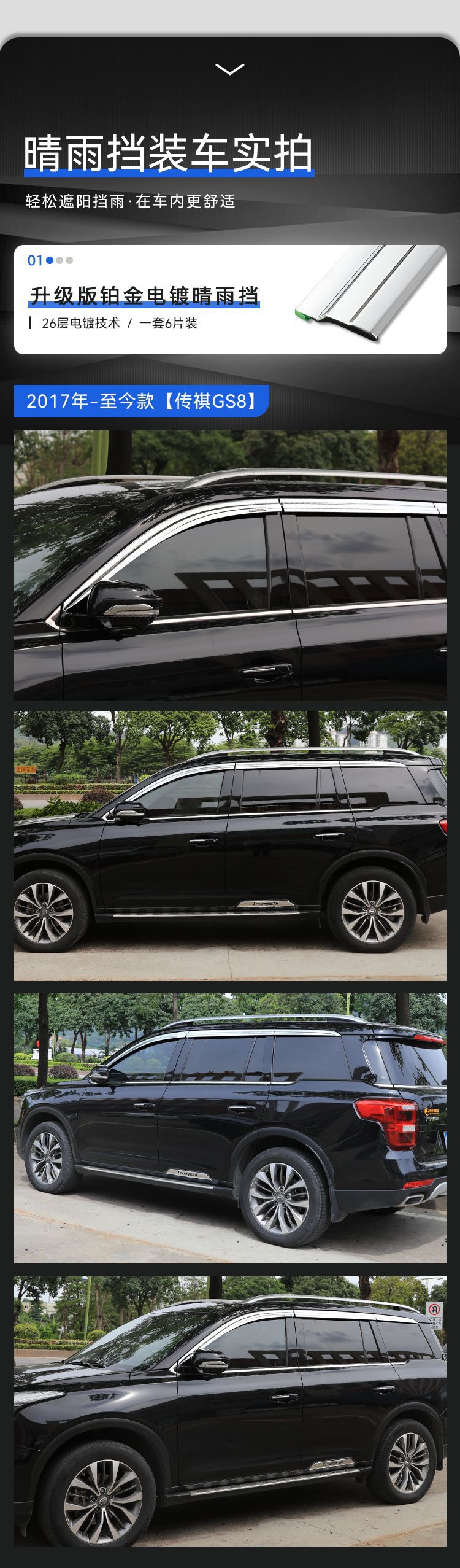 Platinum Window Rain Guards with Mirror Trim for GAC Trumpchi GS8 2017-Present & GS8S 2020-Present & GS8 2nd Gen 2022-Present (6 Pcs/Set)
