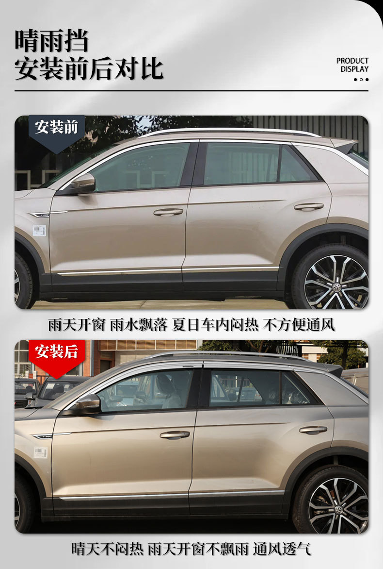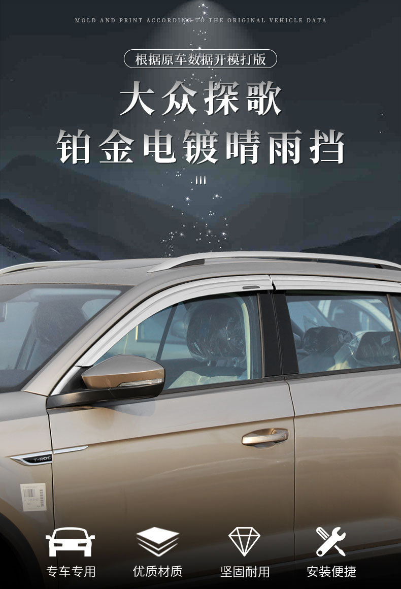 Platinum Window Visor Rain Eyebrow Deflector for Volkswagen T-Roc 2018-Present Tacqua 2020-Present