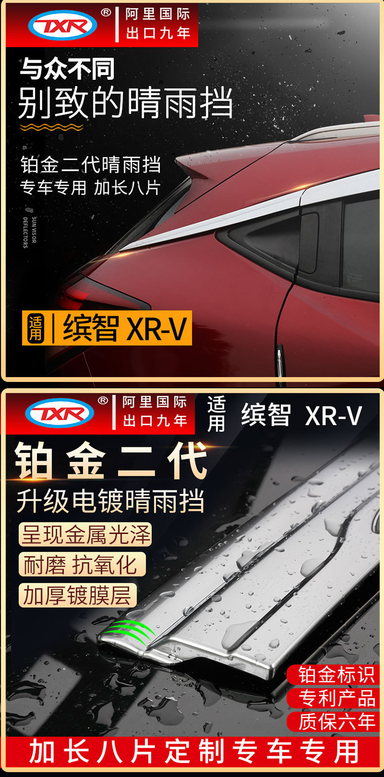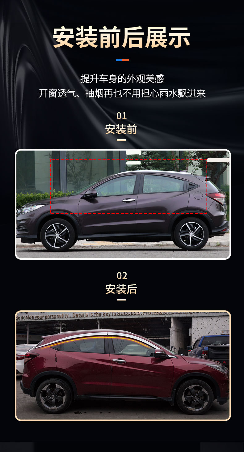 Platinum Window Visor Rain Guard for Honda Vezel HR-V 2014-2023-6PCS