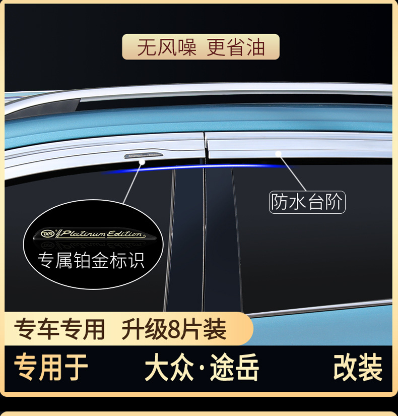 Platinum Window Visors Rain Guards Sun Shade Wind Deflectors for VW Tharu 2019-Present