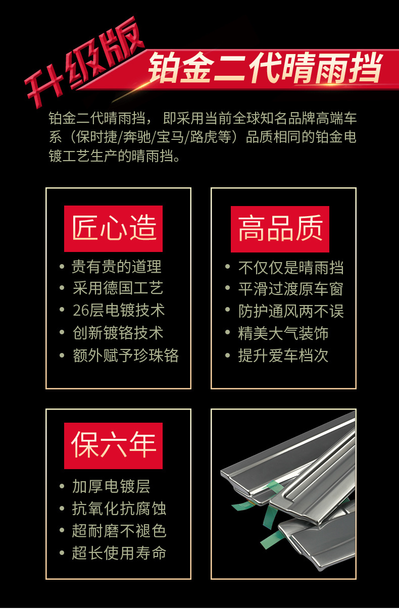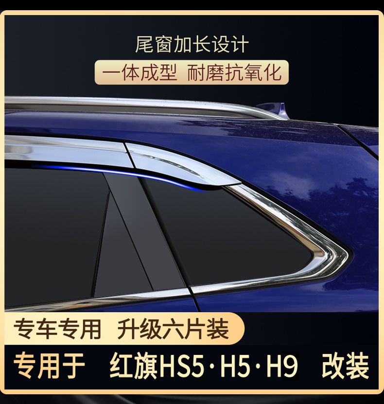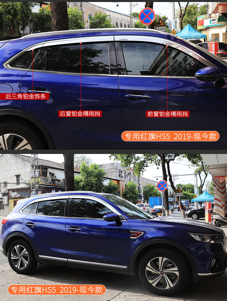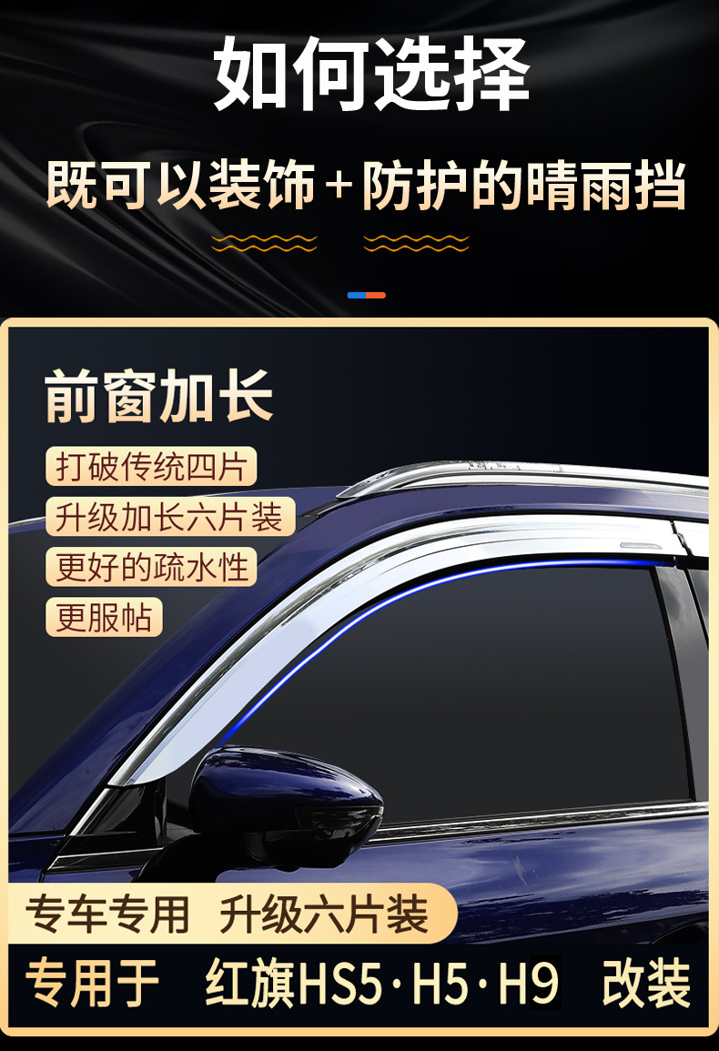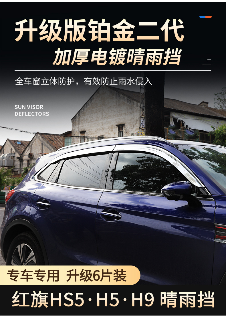 Platinum Window Visors Rain Guards compatible for Hongqi H9 2020-Present, H5 2018-Present, HS5 2019-Present (6pcs Set)