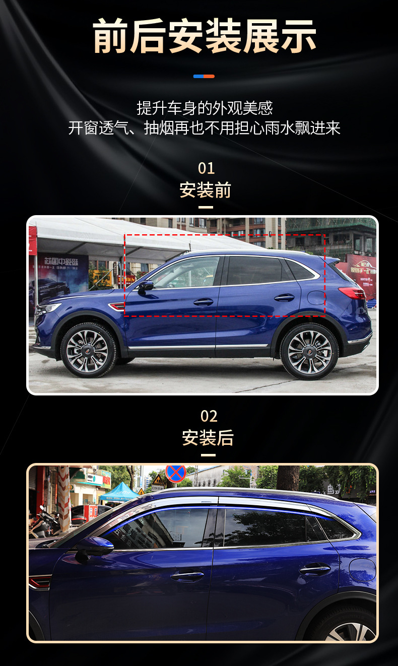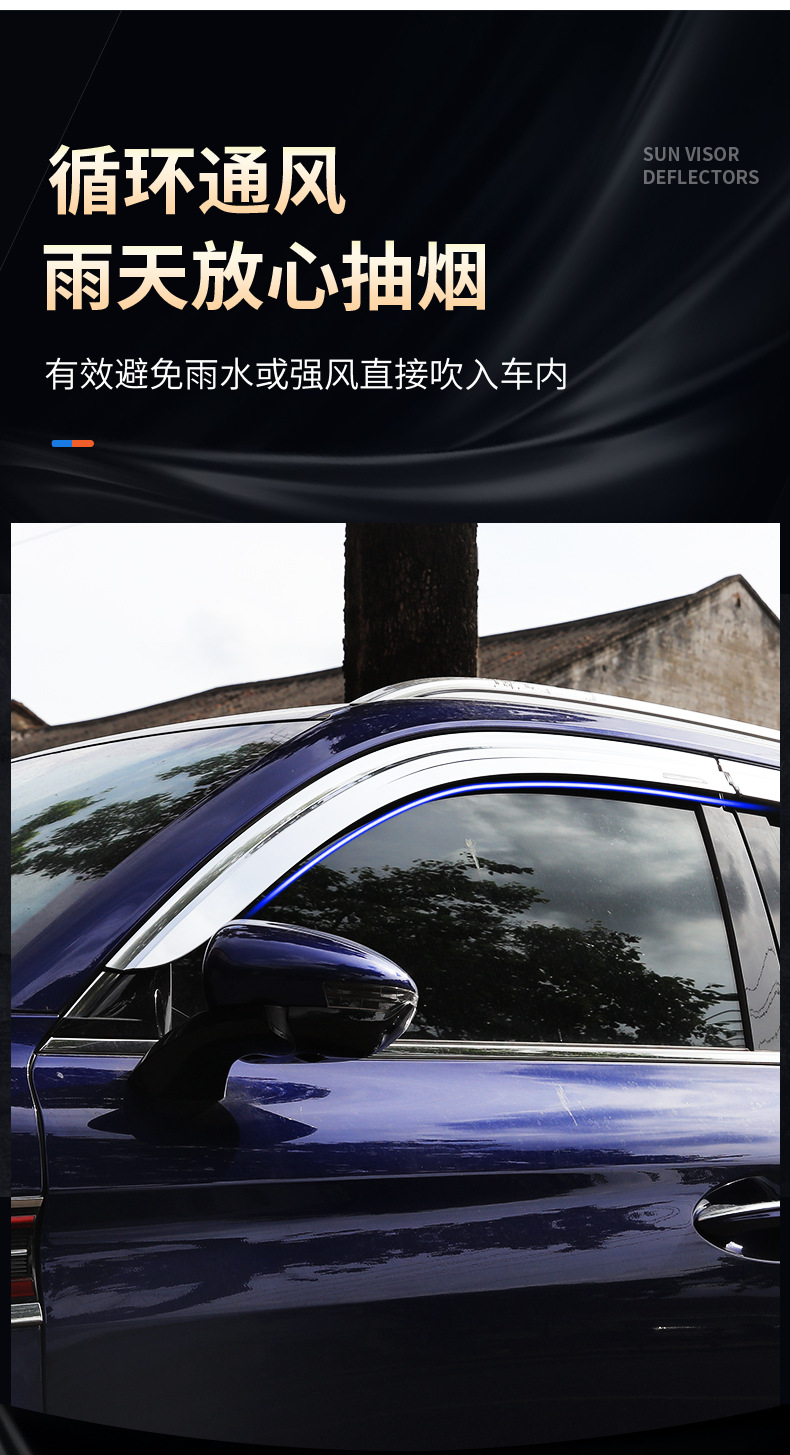 - Performance-Driven Design: Enhances driving comfort by deflecting rain and wind, allowing fresh air circulation while reducing glare and preventing fogging of windows. Features a sleek, aerodynamic design.
