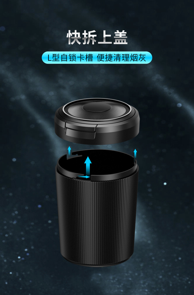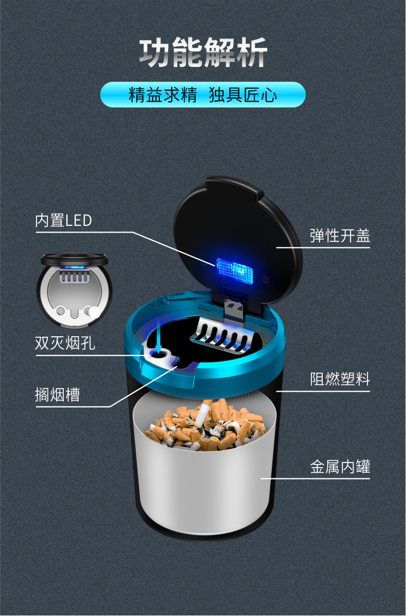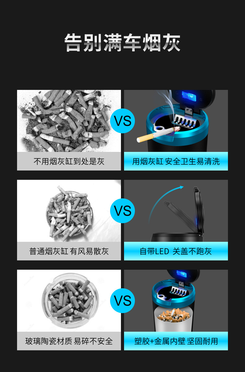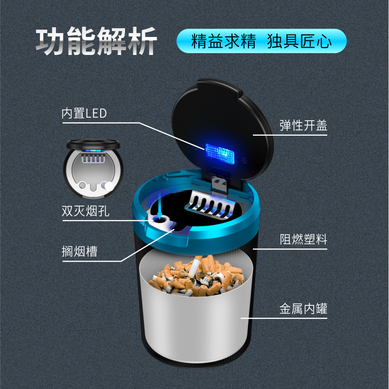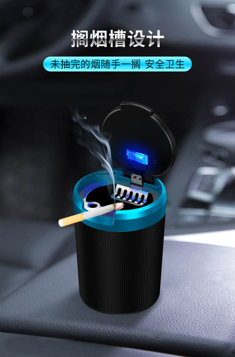 - Easy Installation & Functional LED Light: Featuring a convenient pop-up design and an integrated LED light, this ashtray is easy to use, especially in low-light conditions. The compact size ensures it fits perfectly in most cup holders.