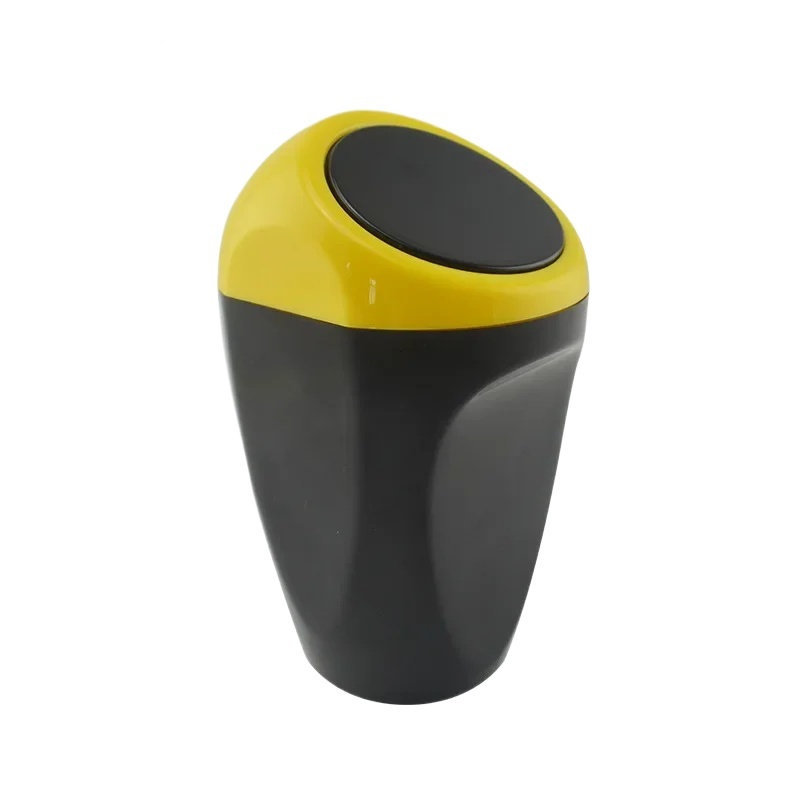 Portable Mini Car Trash Can with Lid for Vehicle Console/Seat Back – Yellow/Black