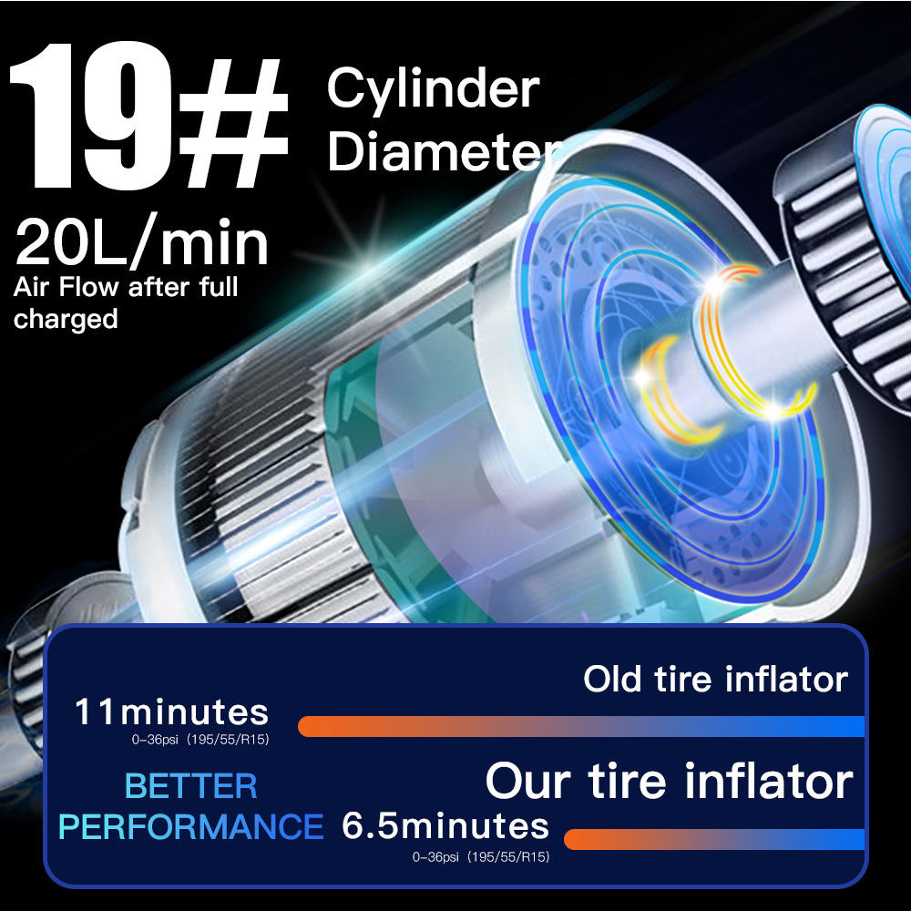 - Efficient Performance: With a powerful 80W motor and a quick inflation speed of 30L/minute airflow, this air compressor ensures fast and efficient tire inflation, saving you time and effort.