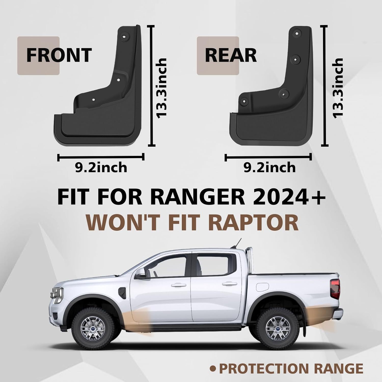 Premium PP+TPE Splash Guards Mud Flaps for Ford Ranger 2024