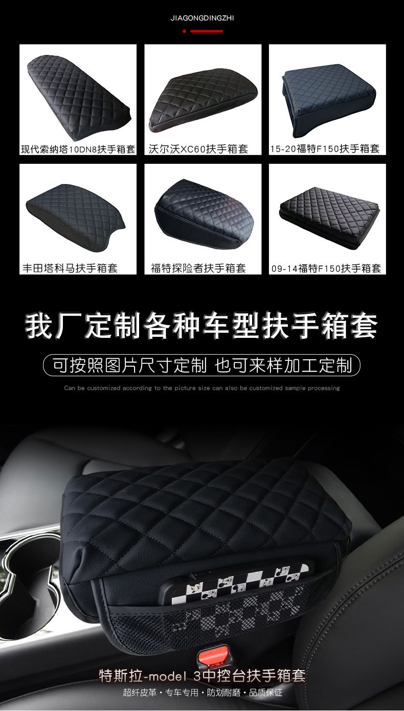 Premium Quilted Leather Armrest Center Console Cover Pad for Tesla