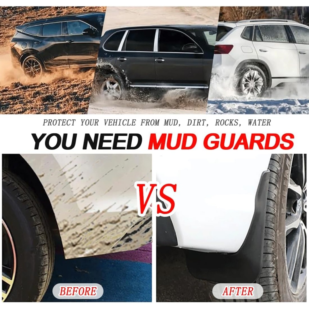 - Enhanced Vehicle Aesthetics: Featuring a sleek black finish, these mudguards not only provide essential protection but also complement your vehicle’s design, adding a refined and sporty look.
