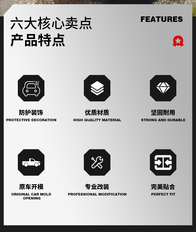 - Rugged RC Style: Features an aggressive RC (Rugged Country) style design, enhancing your vehicle’s appearance with a robust and adventurous aesthetic.