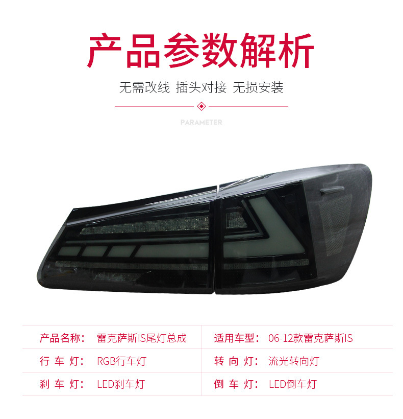 - Package Contents & Value: Includes a full set of tail lights (or one pair if specified), complete with all necessary wiring for a seamless upgrade, enhancing both the look and functionality of your Lexus IS.