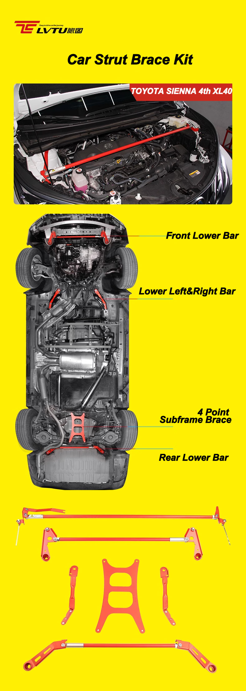 - Enhanced Driving Dynamics: The RTS strut brace system significantly improves handling and stability by reducing body roll and chassis flex, contributing to a more controlled and enjoyable driving experience for your TOYOTA Sienna.