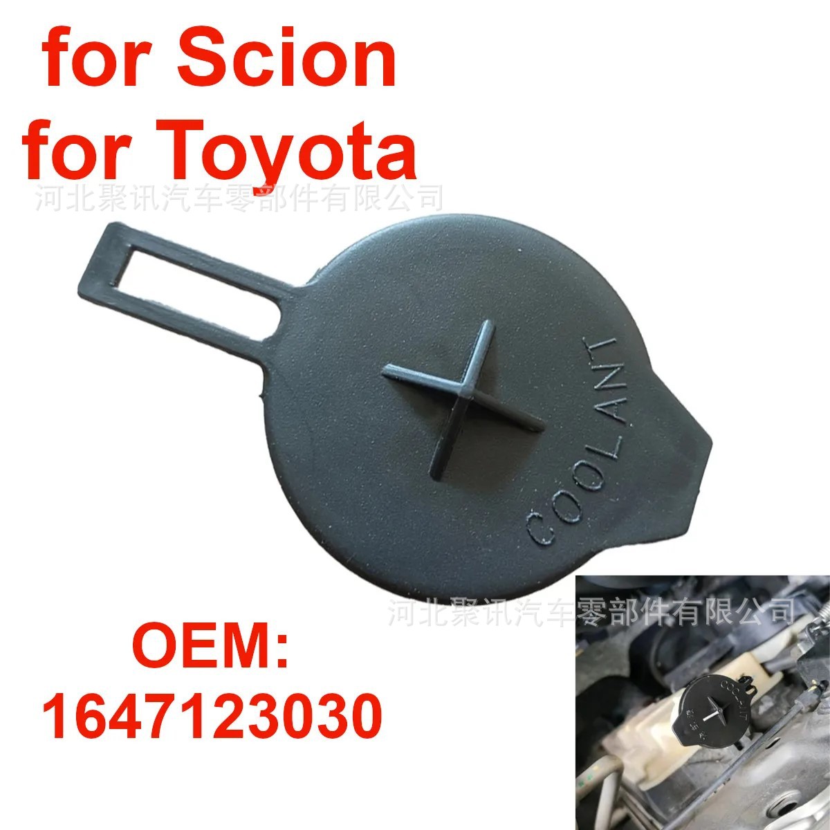 - Direct Fitment: A perfect replacement for your old coolant reservoir cap. Compatible with Toyota Corolla, Toyota Yaris, Scion. Replaces OE part numbers: 1647123030.