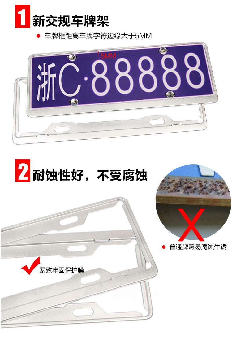 Rainbow Aluminum Alloy License Plate Frame New Traffic Regulations Thickened Car Accessories