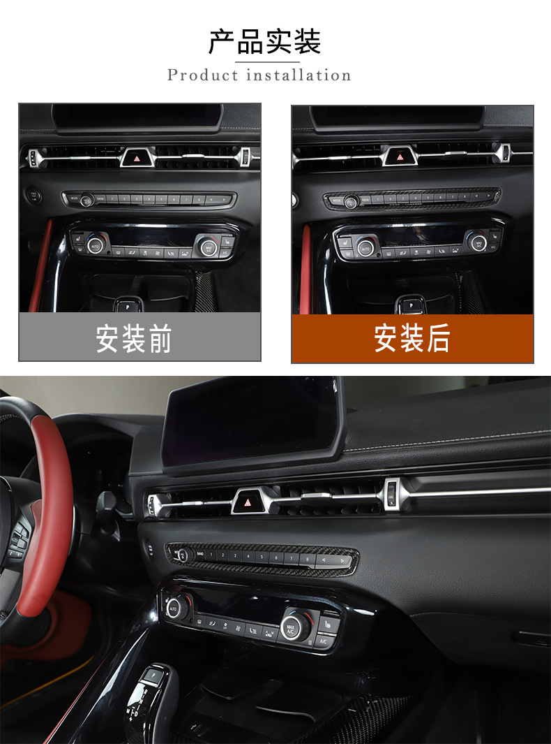 - Package Includes: One (1) Real Carbon Fiber Center Console Air Conditioning Adjustment Panel Frame Trim, providing an instant upgrade to your A90 interior aesthetics and protection.