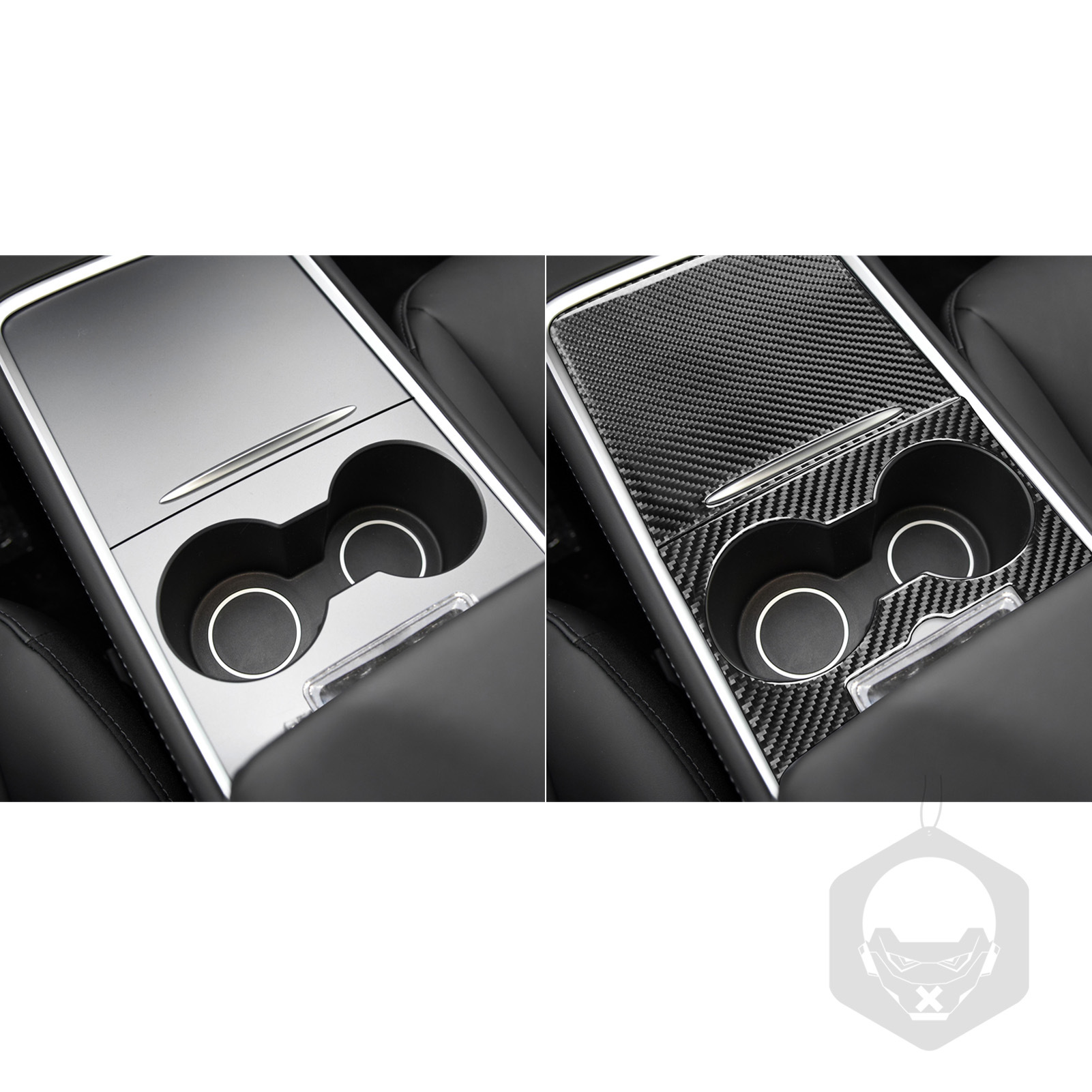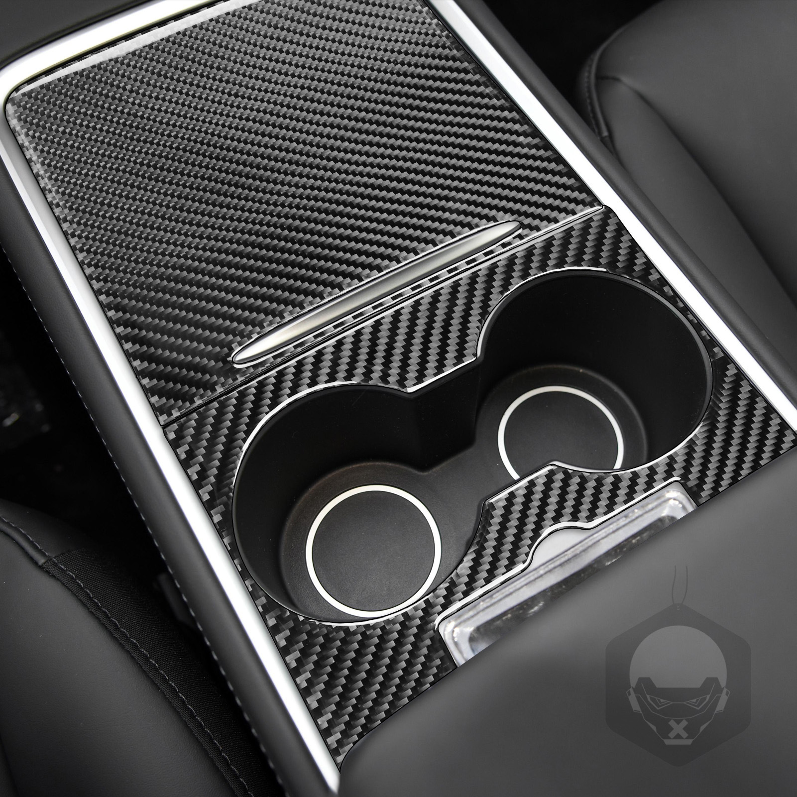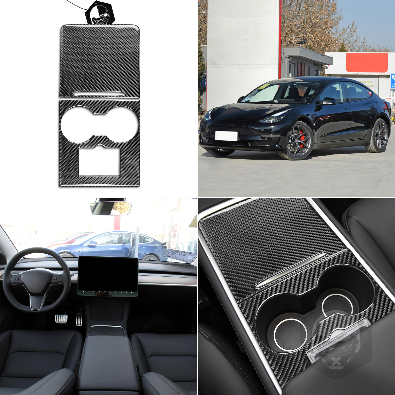 Real Carbon Fiber Center Console Cup Holder Panel Trim Cover with Hole for Tesla Model 3 Car Modification Accessory