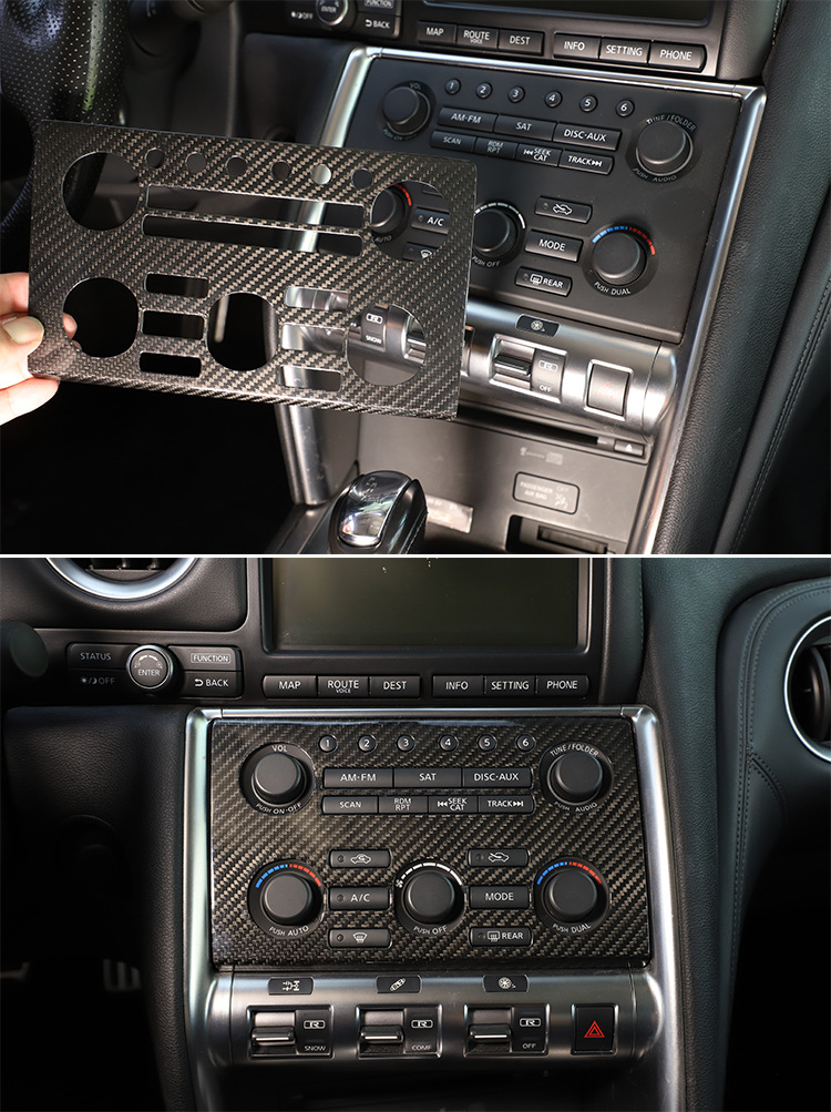 - Package Includes: One (1) Real Carbon Fiber Center Console Volume Panel Trim. A perfect interior upgrade to refresh and protect your Nissan GTR’s console.