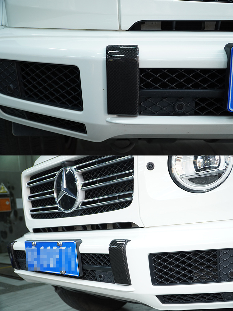 - Enhanced Aesthetic Appeal: Features a sleek black carbon fiber finish that elevates the exterior styling of your G-Class, adding a sporty and luxurious touch to the front bumper.