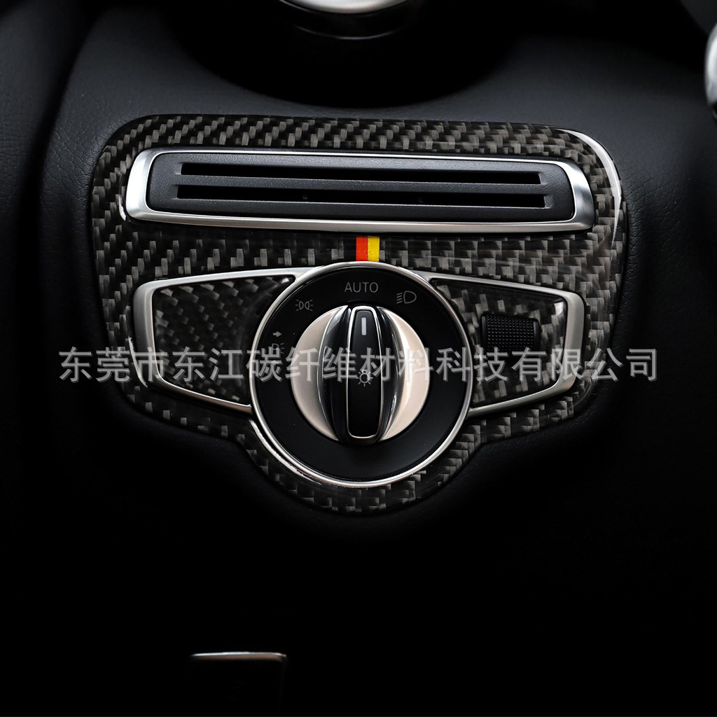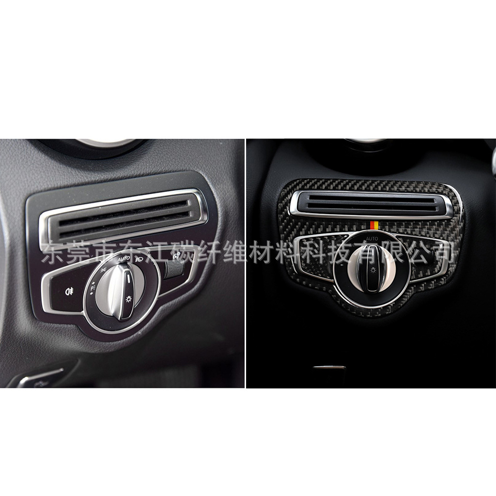 Real Carbon Fiber Headlight Switch Decor Trim for Mercedes-Benz GLC260, C-Class C200, C180 W205