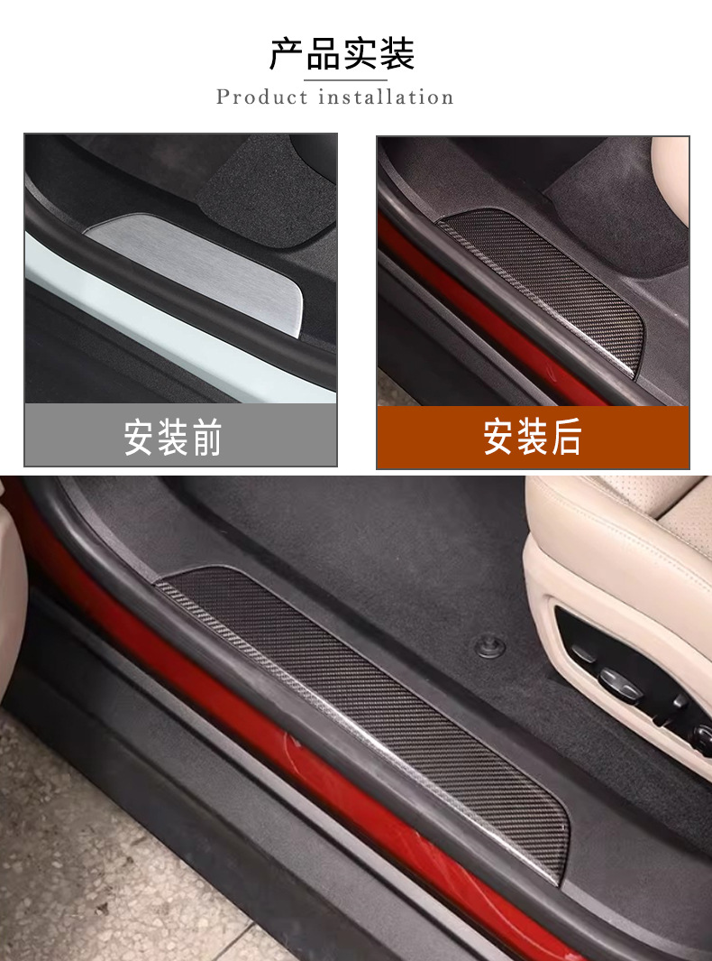 - Complete Set for Interior Protection: Package includes a full set of carbon fiber illuminated door sill plates for your Taycan. Not only do they protect your original sills from daily wear and tear, but they also enhance your car’s resale value and interior ambiance.