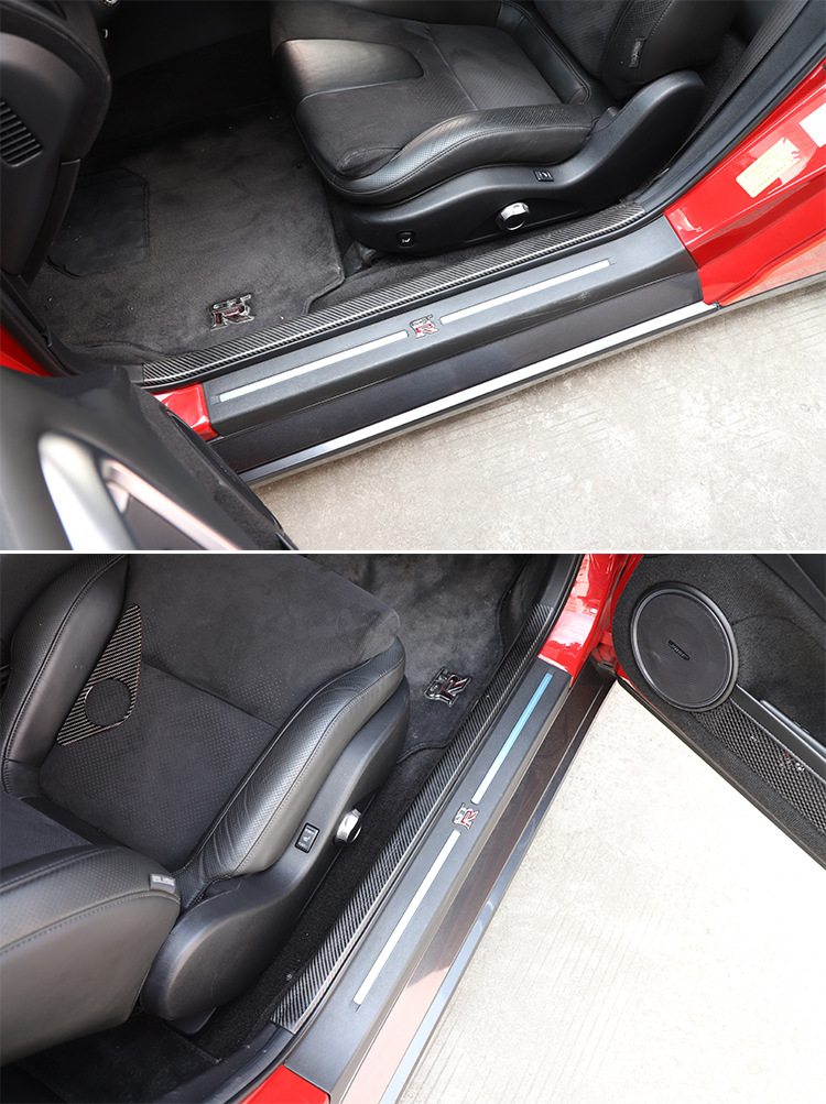 Real Carbon Fiber Illuminated Door Sill Scuff Plate Trim for Nissan GTR R35 (2008-2016)