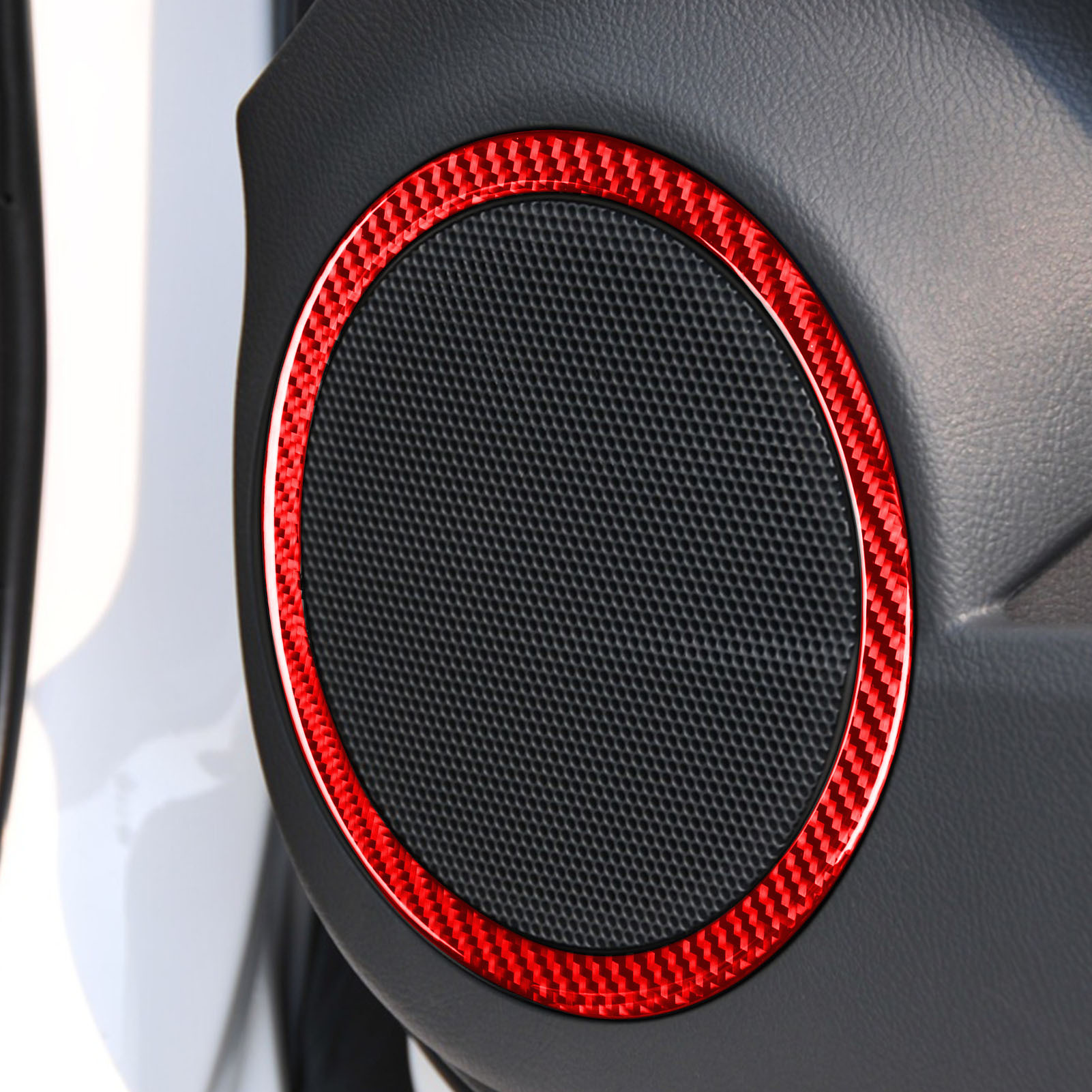 - Package Contents: Includes 2PCS of carbon fiber interior door speaker ring decorative trim stickers. An ideal accessory to modify and personalize your vehicle’s interior appearance.