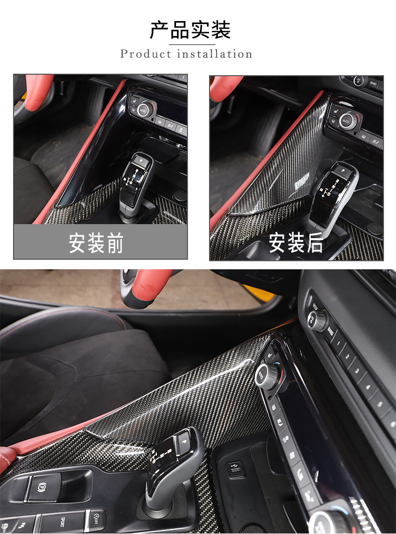 - Package Contents: Includes 1x carbon fiber shift gear base panel frame cover. An ideal upgrade to personalize and protect your Toyota SUPRA’s gear shift area.