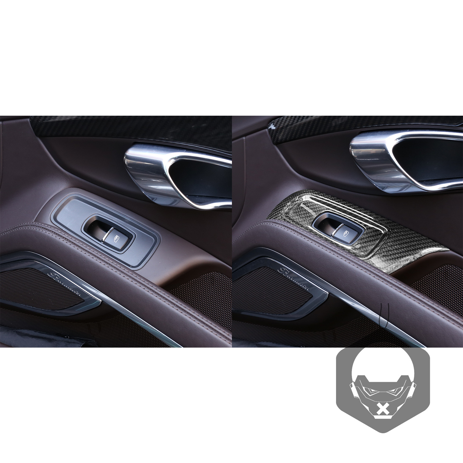 - Package Contents & Value: Includes a complete set of carbon fiber window lift panel trim stickers. A simple yet effective upgrade to personalize and enhance the overall aesthetic of your Porsche 718 interior.