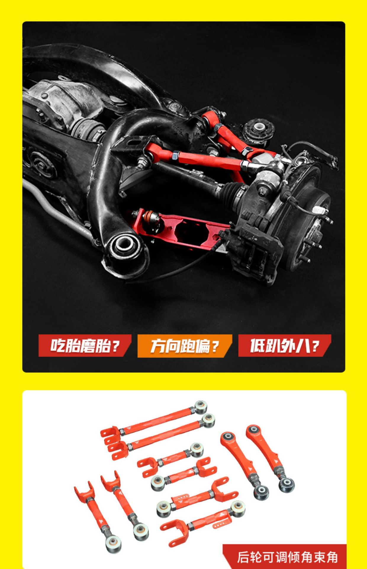 - Enhanced Handling & Stability: Features ±3° adjustable camber to allow precise suspension tuning, improving tire wear, handling characteristics, and overall vehicle stability.