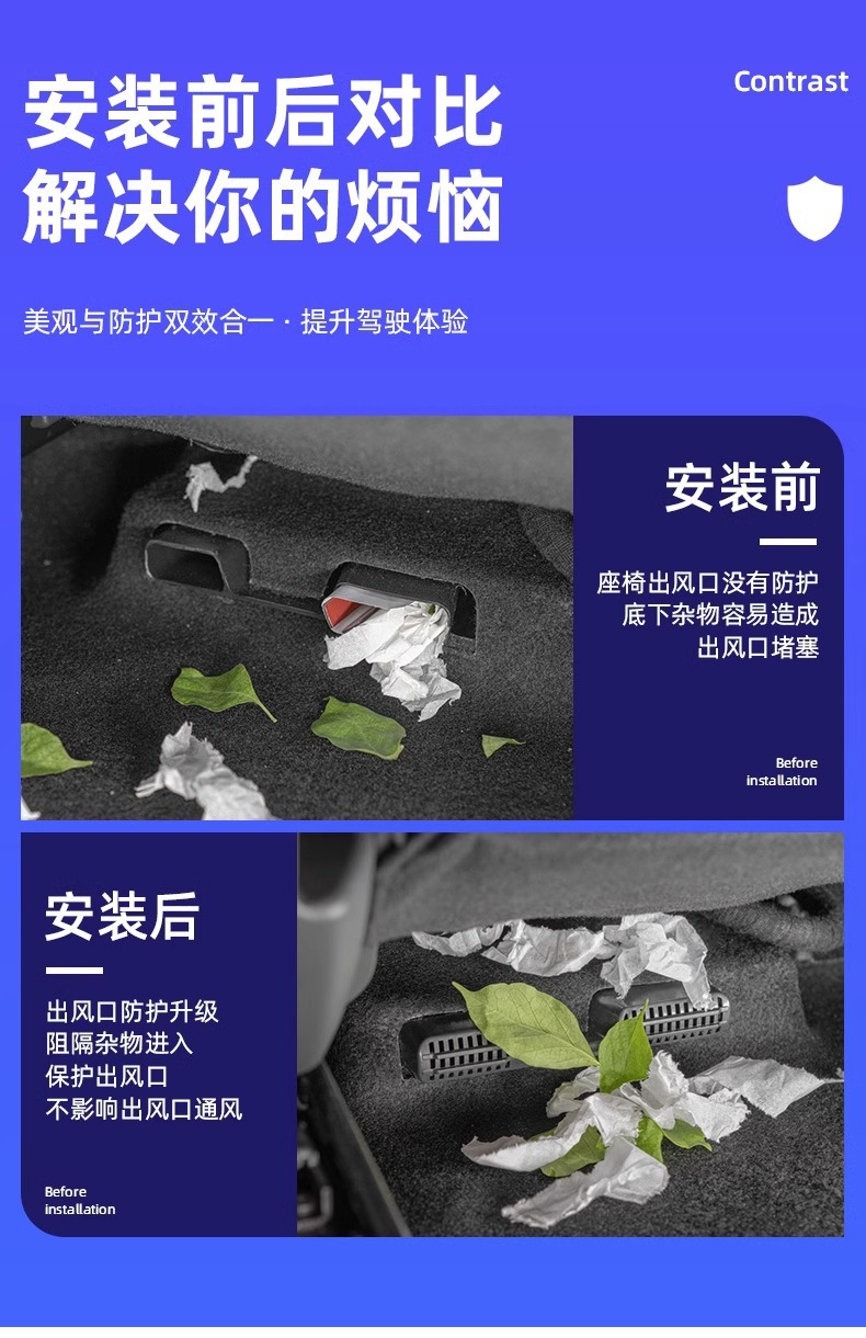 - Complete Package: Includes 1x Rear Air Vent Outlet Protective Cover Set, exactly as pictured. Please verify fitment details before purchasing.