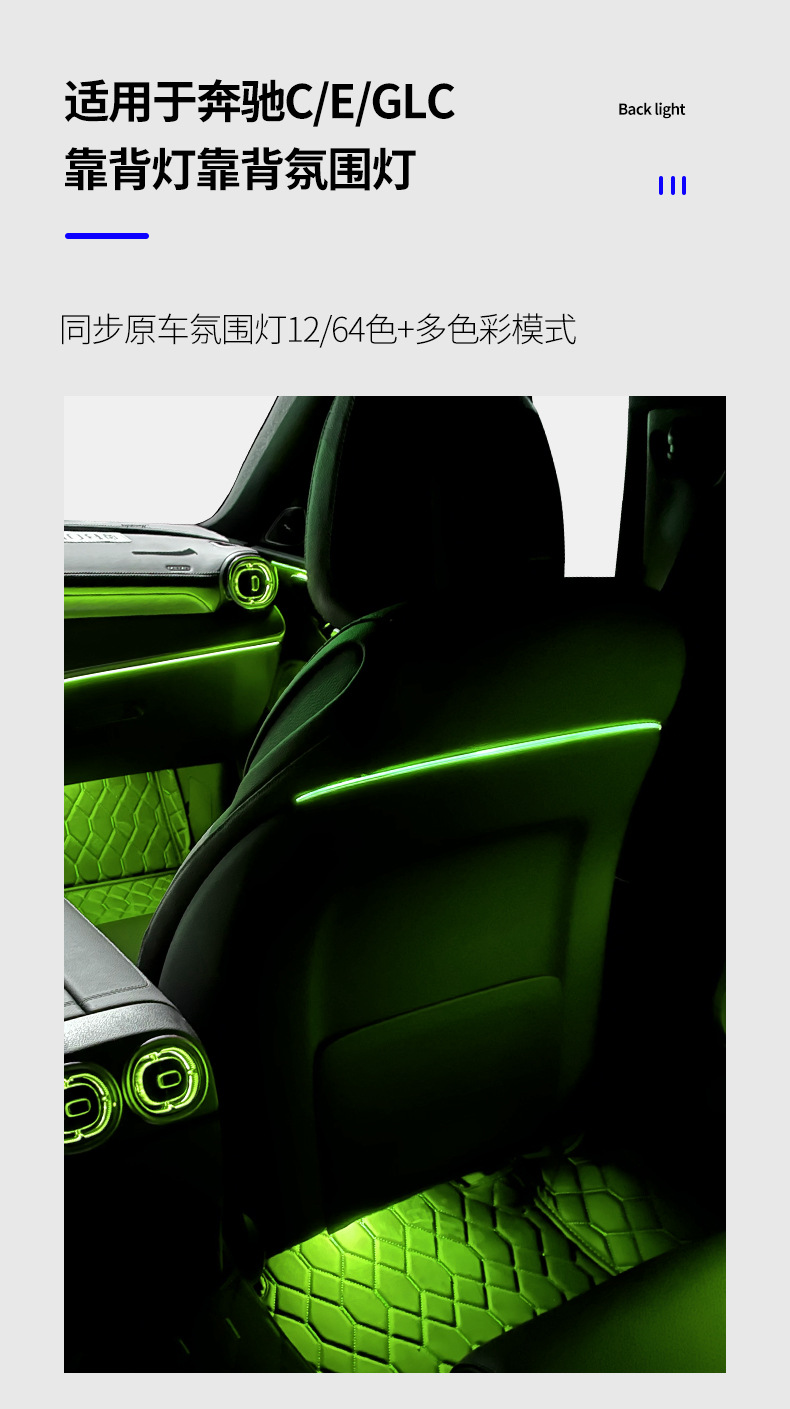Rear Backrest Light 12/64-Color Ambient Light for Mercedes-Benz C-Class W206 E-Class W213 GLC-Class X253 (2022 and Newer Models)