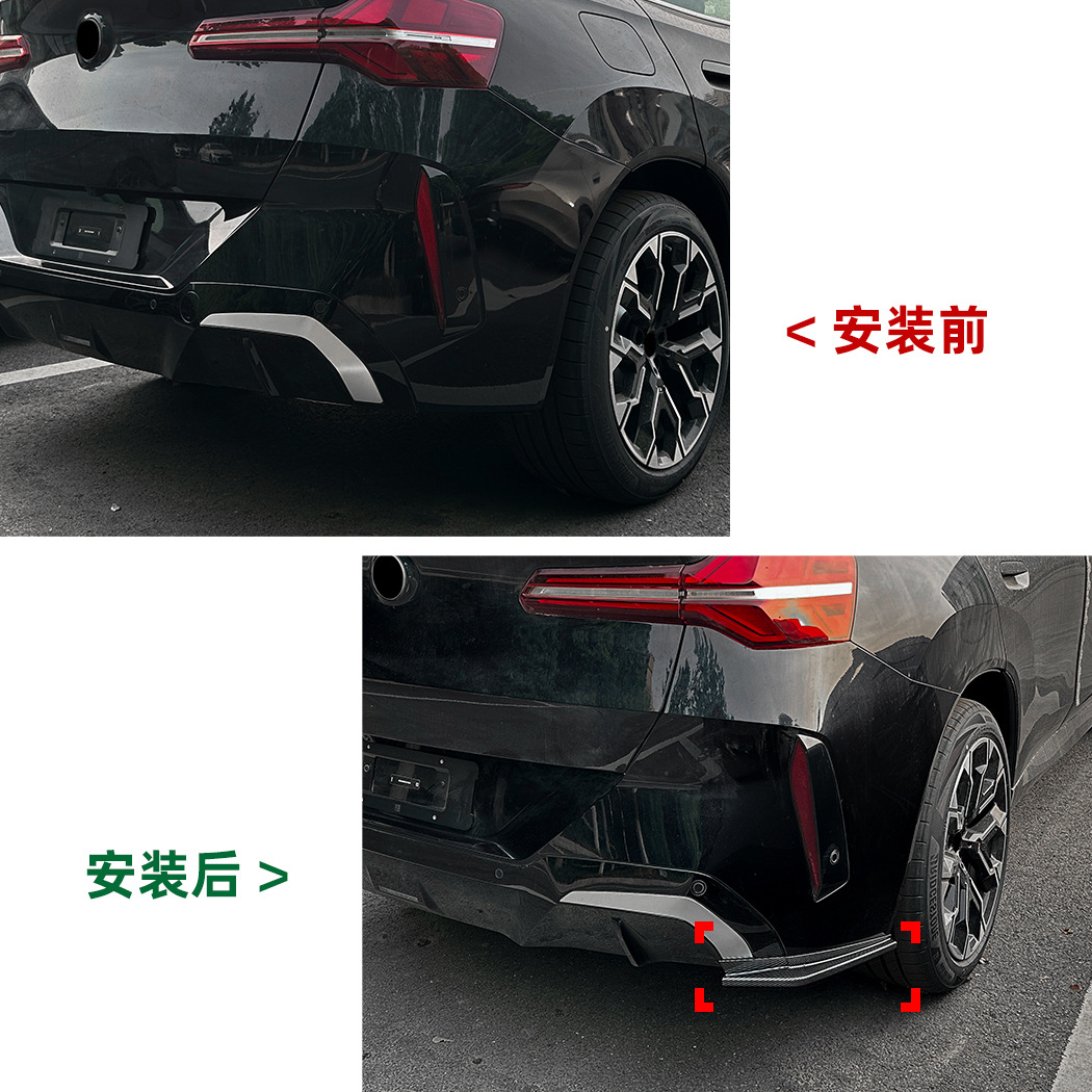 - Sleek Aesthetic Upgrade: Available in stylish Piano Black and Carbon Fiber Texture finishes, these rear bumper corner aprons enhance your X3’s aggressive M Sport styling, adding a distinctive, sporty touch.