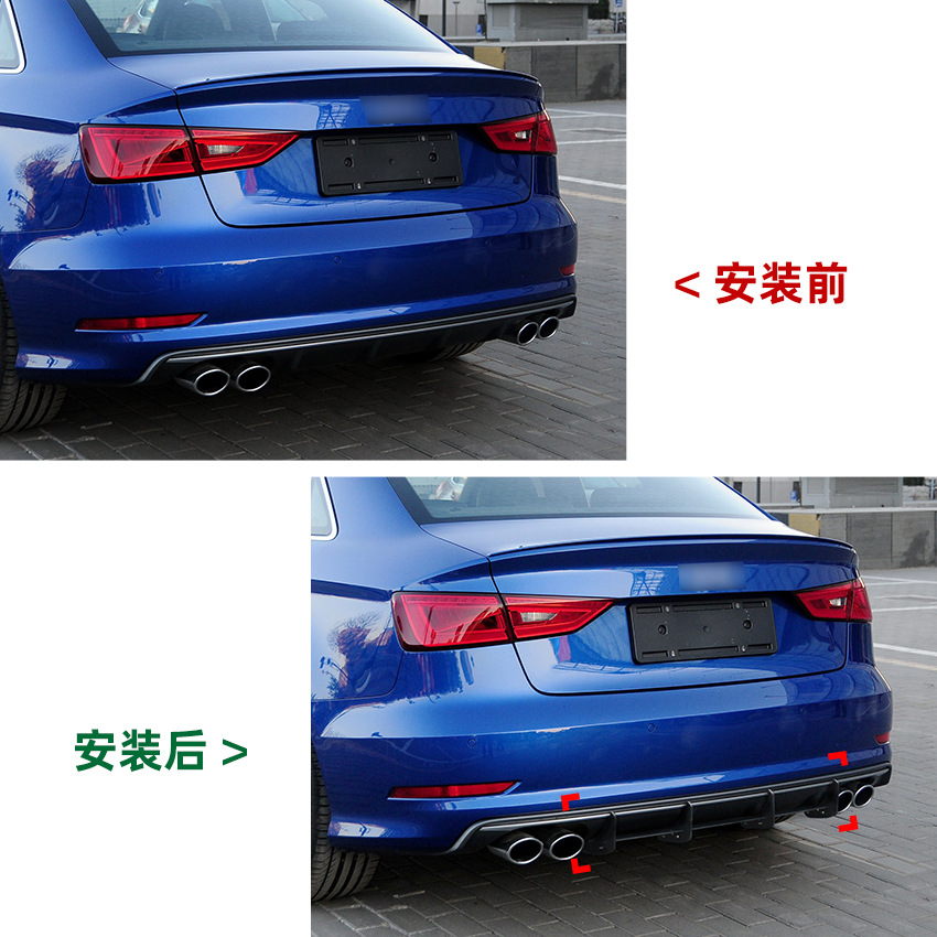 Rear Bumper Diffuser Lip Wing Spoiler Blades for Audi S3 8V Sedan 2013-2015 Pre-facelift