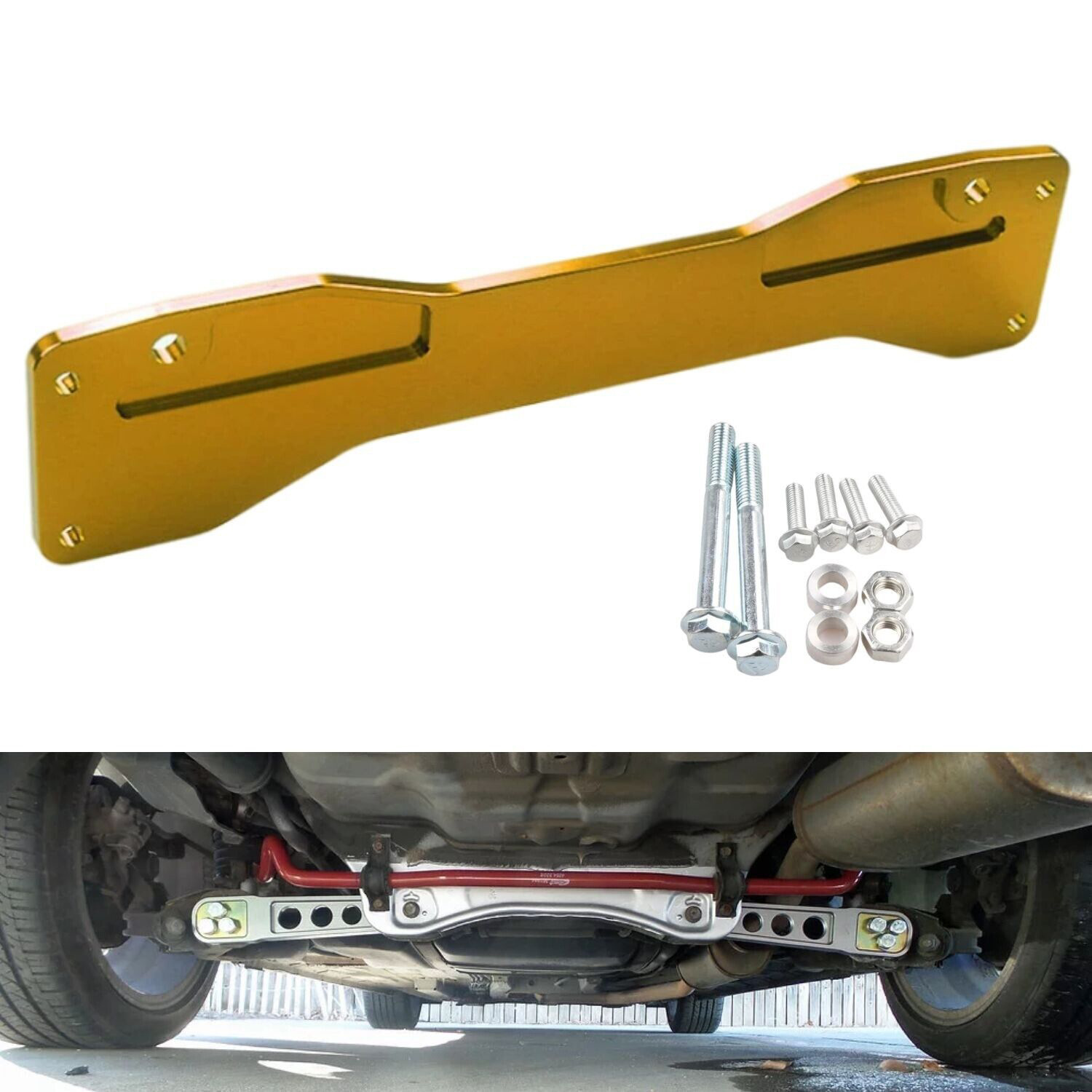 • Durable Gold Anodized Aluminum: Crafted from high-grade aluminum with a striking gold anodized finish, this rear subframe brace is built for extreme durability and corrosion resistance, providing long-lasting performance and maintaining its lustrous appearance.