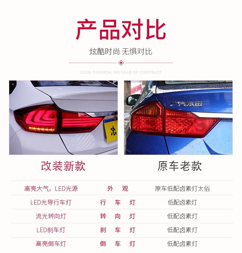 Rear LED Tail Light Assembly (Flowing Turn Signal, Brake Light) for Honda City 2015-2019