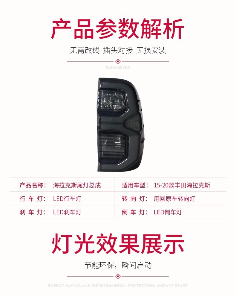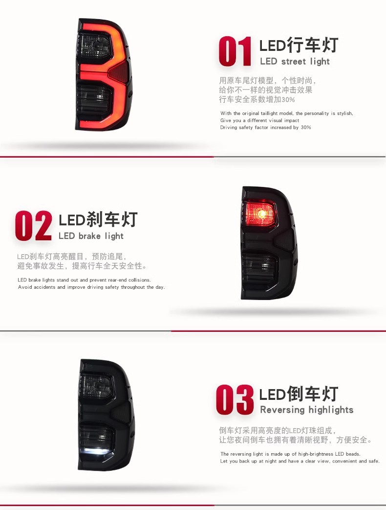 Rear LED Tail Light Assembly (LED Running Light, Brake Light) for Toyota Hilux Revo 2015-2021