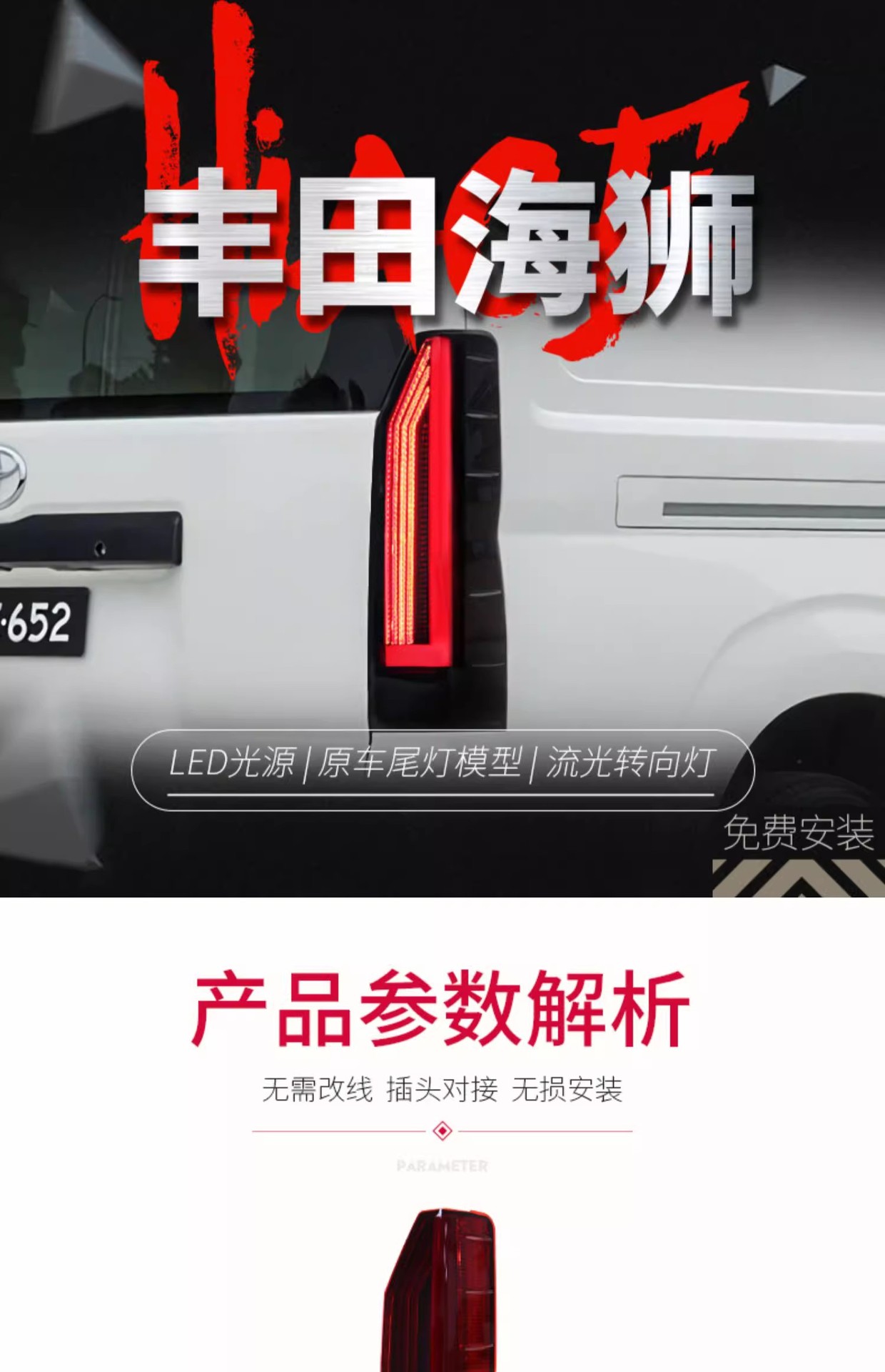 Rear LED Tail Light Assembly (Left/Right) for Toyota Hiace 300 Series (2019-2025) with Flowing Turn Signal LED DRL