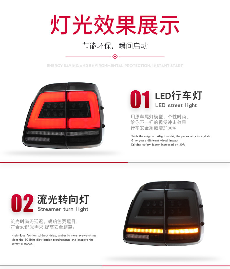 Rear LED Tail Light Assembly (Pair) for Toyota Land Cruiser LC100 (1998-2007)