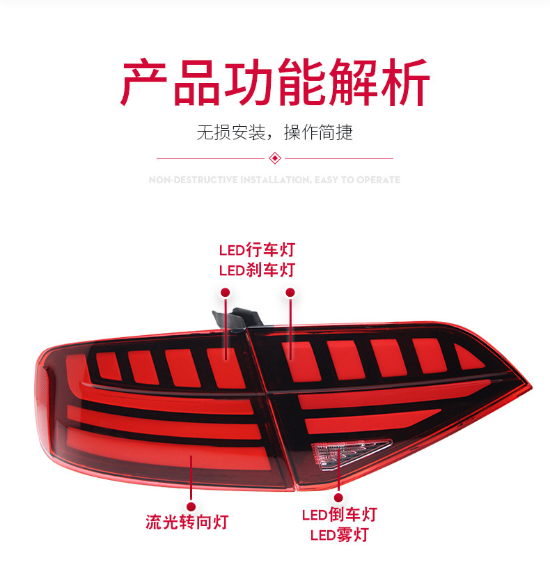 Rear LED Tail Light Assembly Dynamic Flow Turn Signal Brake Running Light for Audi A4L (2009-2012)