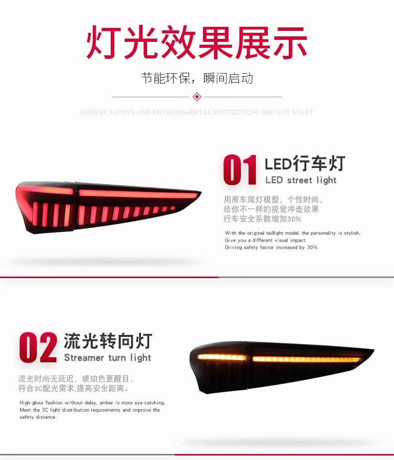 Rear LED Tail Light Assembly Modified Sequential Turn Signal for Toyota Crown Kluger Highlander (2022-)