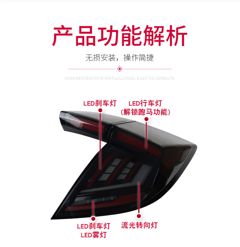 - Sleek & Modern Design: Upgrade your vehicle’s aesthetics with a modern LED tail light assembly that provides a distinctive look and enhances the overall rear profile of your Civic Hatchback.