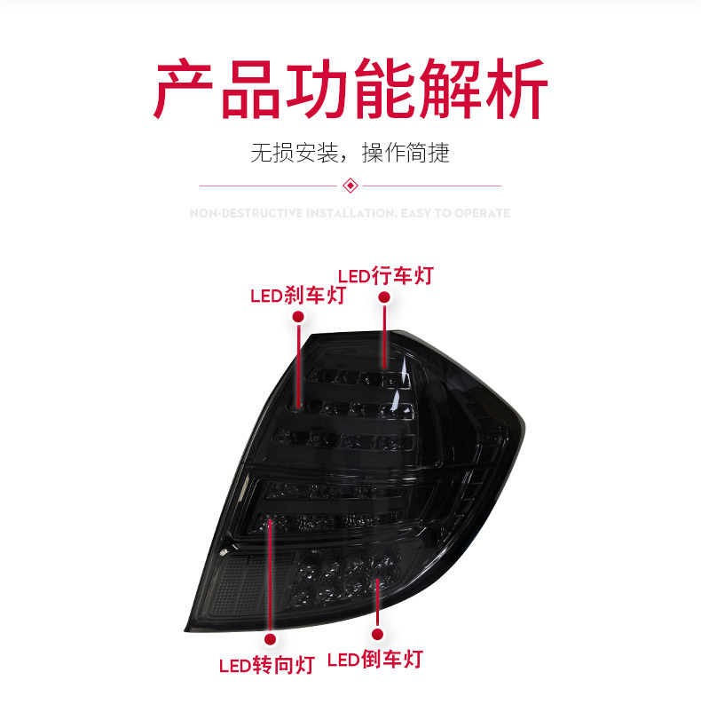 Rear LED Tail Lights Assembly Daytime Running Lights Brake Lights Turn Signals for Honda Fit II (2008-2013)