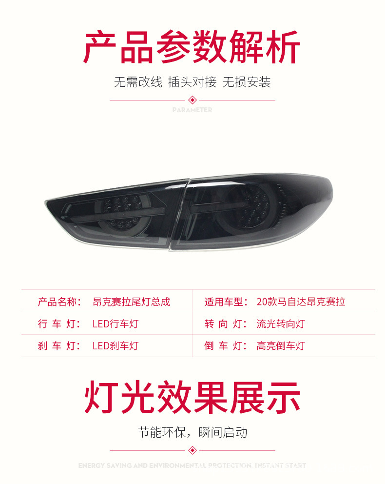 Rear LED Taillight Assembly Dynamic Turn Signal Lamps for Mazda 3 Axela (2020)