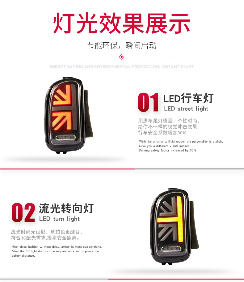 Rear LED Union Jack Tail Light Assembly Running Water Turn Signal Brake Light for MINI R55