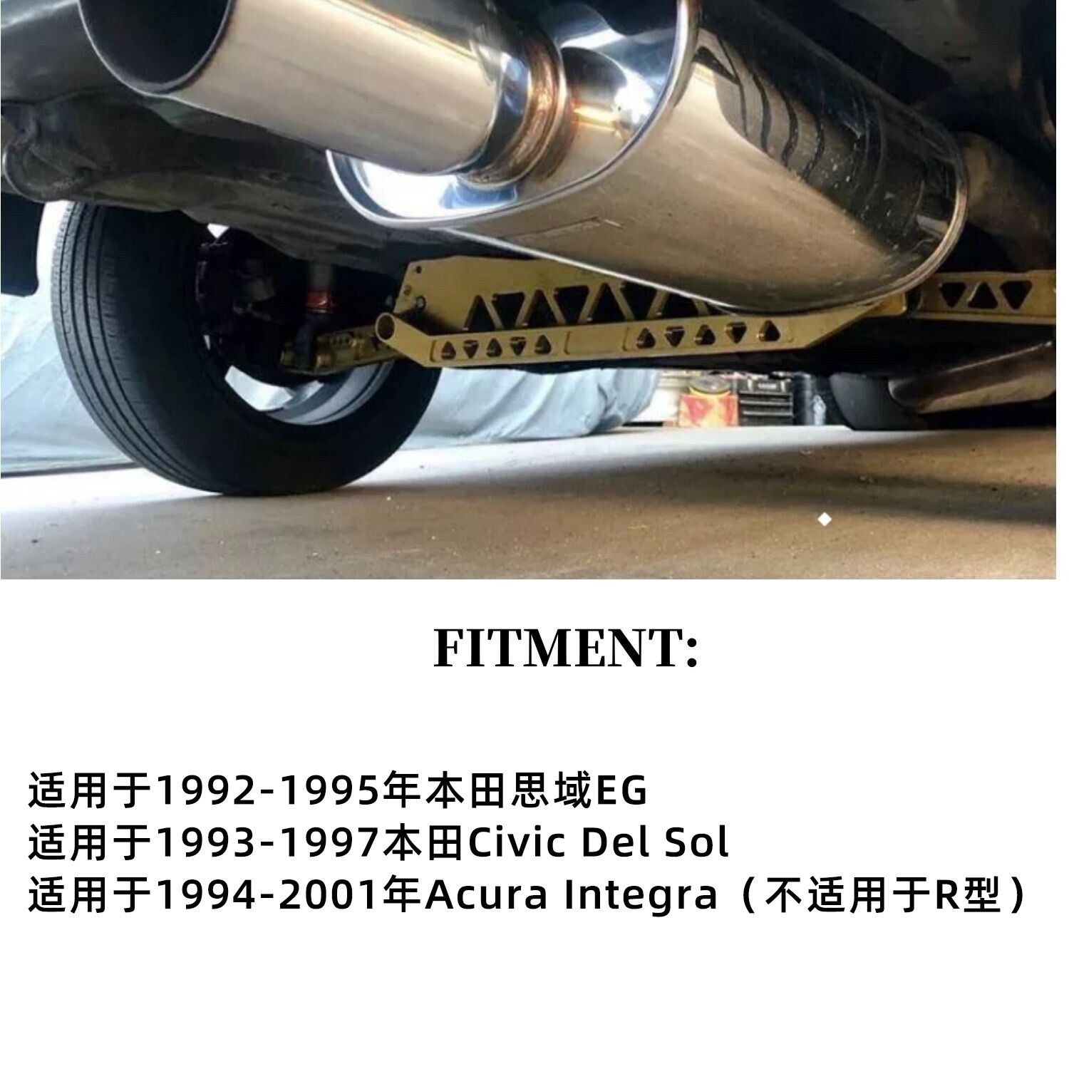 Rear Lower Billet Subframe Brace (Gold, Aluminum) for Honda Civic EG 1992-1995, Acura Integra 1994-2001