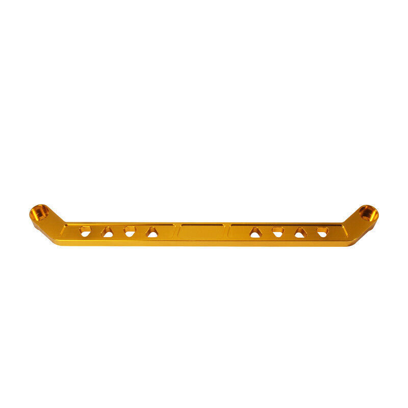 • The striking gold finish of this billet aluminum tie bar adds a vibrant, performance-oriented aesthetic to your vehicle’s undercarriage, enhancing its overall sporty look.